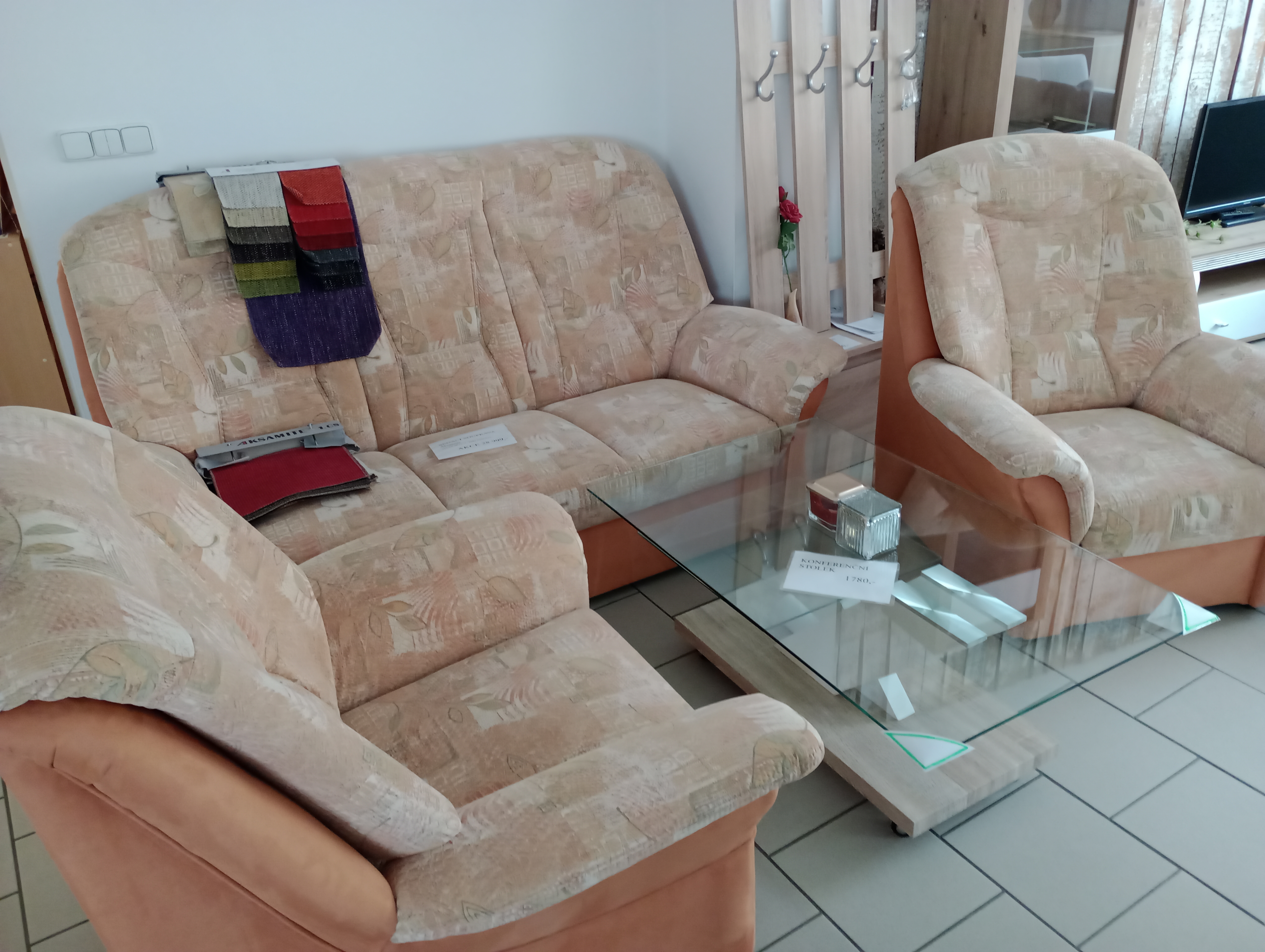 Sedací soupravaAtlas - Aksamite v látce 3036/P17 SLEVA!!! původní cena 28.999,-Kč nyní u nás v obchodě ihned k zakoupení za 25.000,-Kč příjemné sezení s vysokým opěrem zad třípohovka + 2 křesla