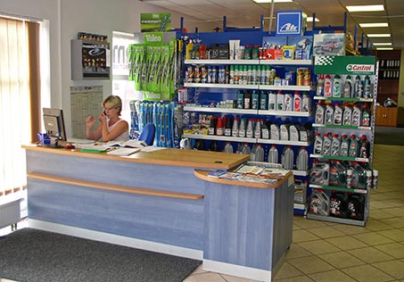 Kompletní vybavení obchodů s autodíly. Prodejní pulty, kancelářský nábytek, kuchyňky.