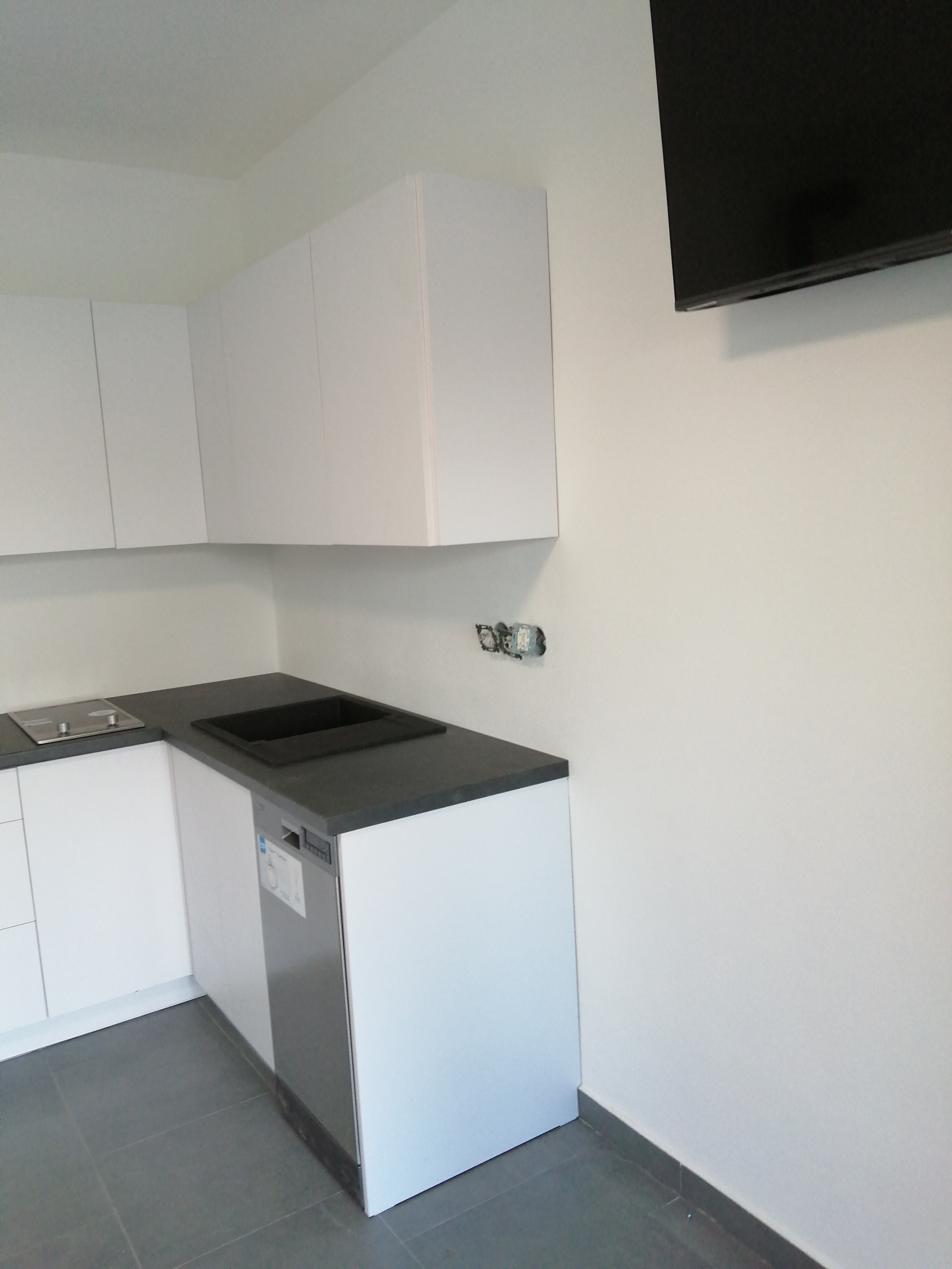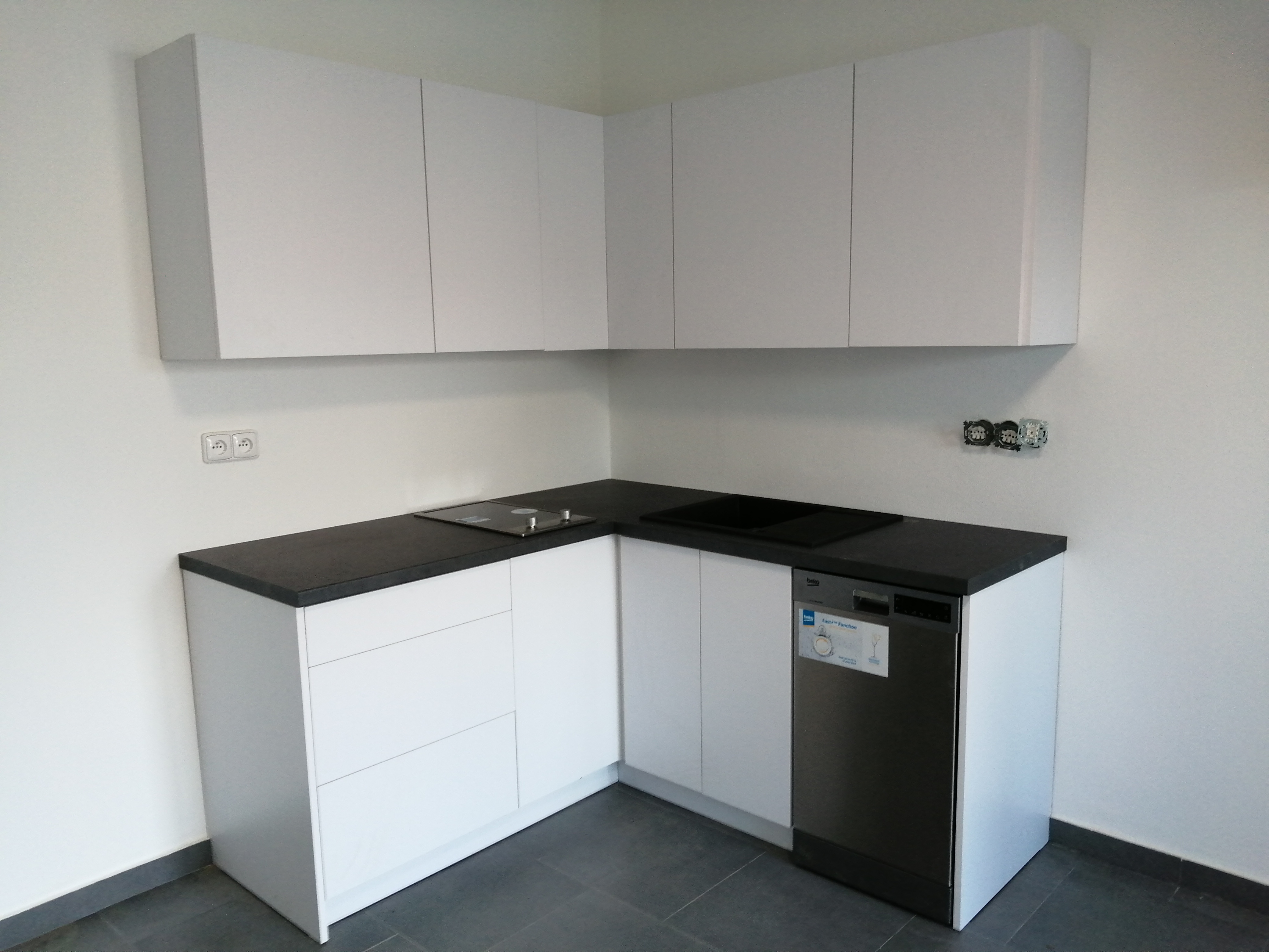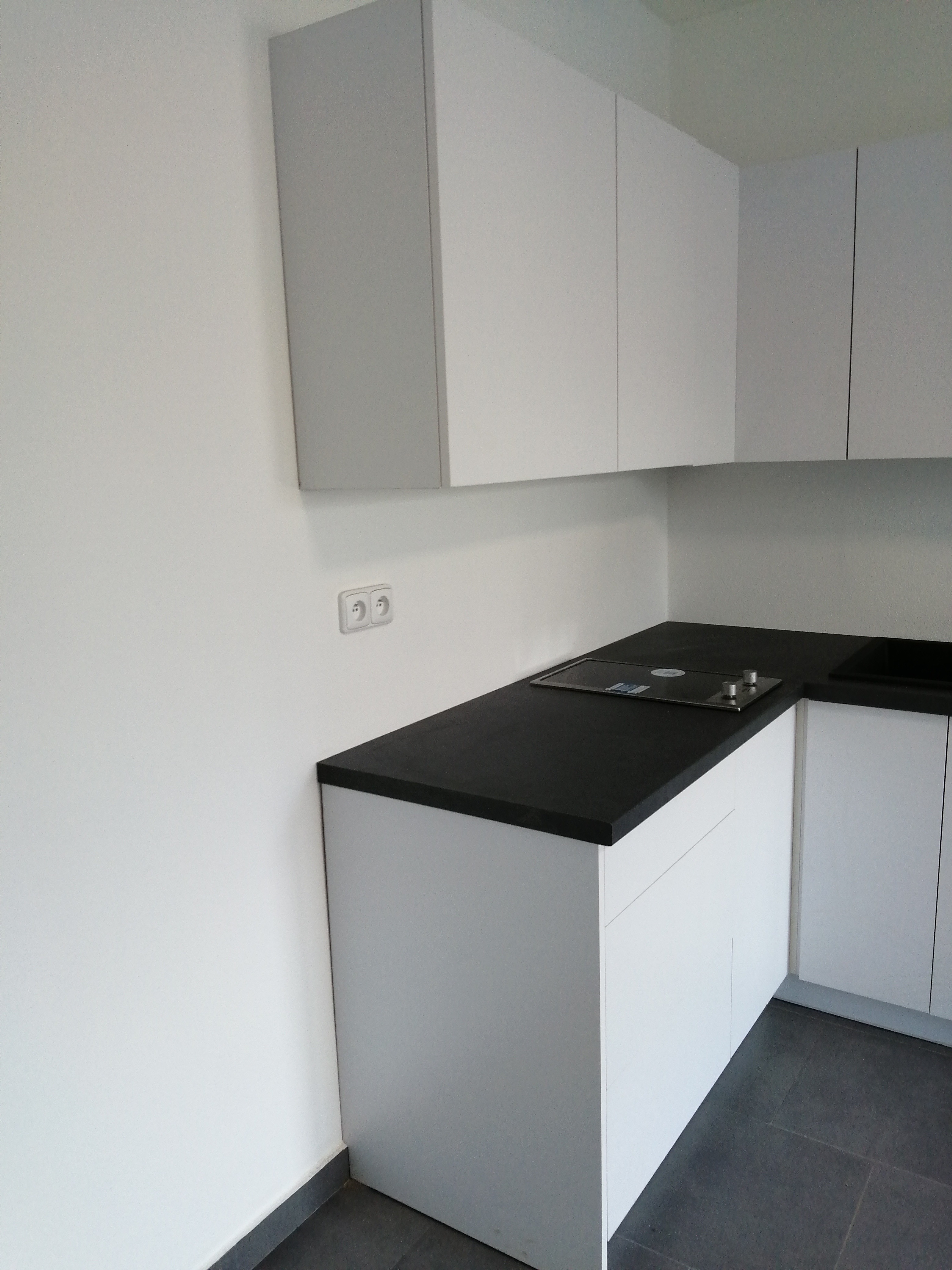 včetně potravinové skříně a bílé desky a police ve vysokém lesku vyrobené přímo na míru